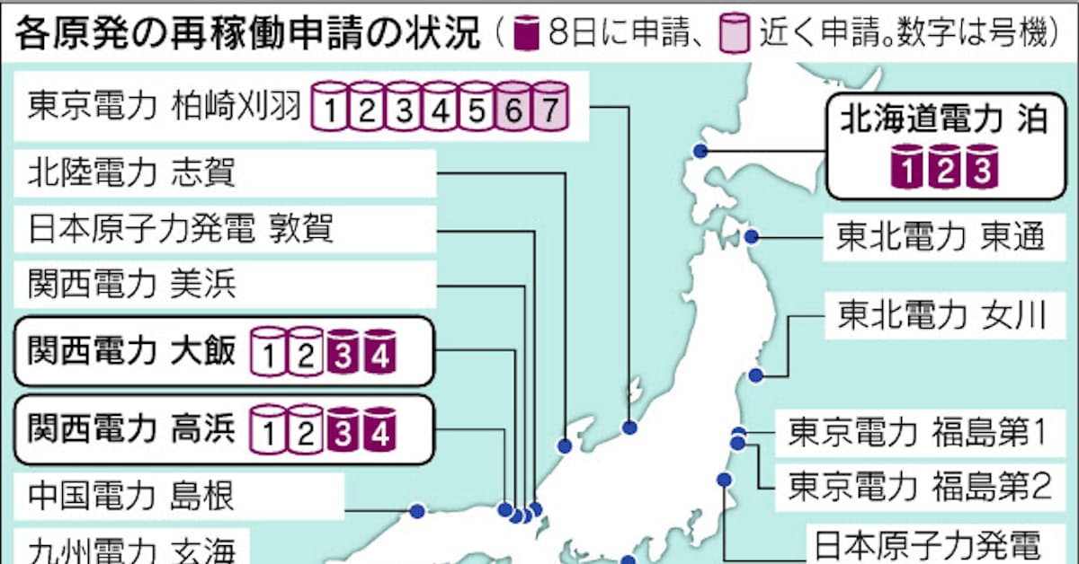 5原発10基再稼働申請 電力4社 新基準が施行 日本経済新聞